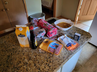 The alarm went off and we got up around 9ish. We got dressed for the day and started making our breakfast. We looked through the cupboards to find the mixing bowls, flying pans and the other cookware we might need. It was like playing a scavenger hunt just to make breakfast. Ben worked on the French toast, and I did the eggs and sausage. We bought liquid eggs because we weren't sure if we'd use an entire dozen eggs and those would be hard to travel back home with. I've never used liquid eggs before, so I wasn't sure if you had to cook them differently or not. I guess we'll find out!